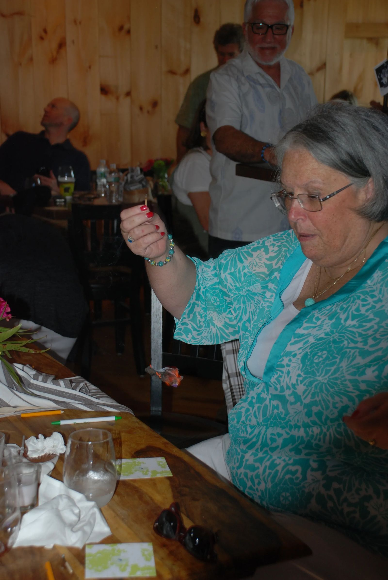And finally, he was at the “Gathering”. Sirry said in her 13 yrs. as a medium she has not walked into such a “party” atmosphere – she was confused by it because she said it was so unusual…..this was no memorial….she asked if it was a very casual atmosphere – saw an expanse of a green field with a view …..and like a barbeque style (picnic in our terms). (It was at Sweetberry Farm!) He liked the singing. (I had found a wonderful duo to serenade us). He said it was a highlight. He loved the party favors!! (the wish papers). He said the love in his heart was immense.