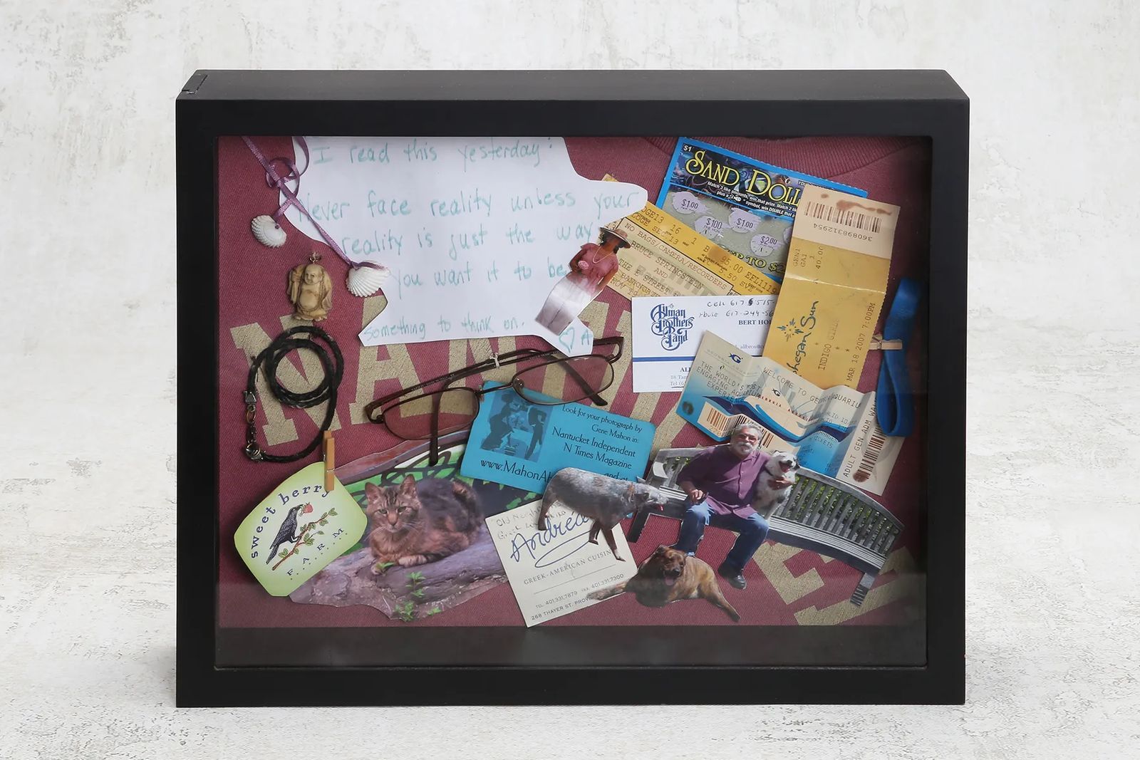 We backed another box with one of Peter’s favorite t-shirts from the island of Nantucket where we had all once lived together, more favorite photos, a bracelet he never took off, his glasses, a carved Buddha he had discovered one year when he was digging to build foundations that we still marveled at years later, a note I had written to him as we were experiencing some of his health challenges, and a lottery ticket which was a staple in his life!.